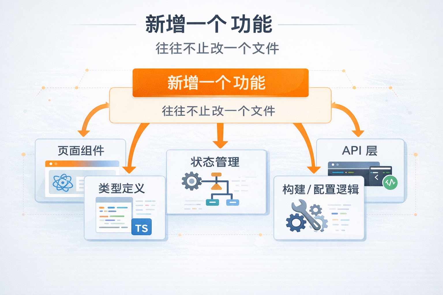 比如一个实际需求,往往不是只改一个文件,而是会牵动:
