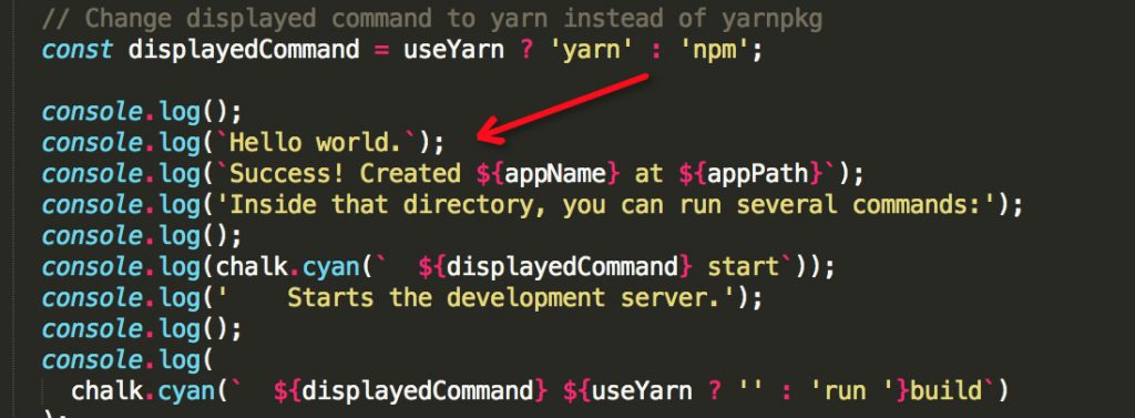 把我们fork好的create-react-app clone到本地,checkout一个稳定版的tag,打开react-scripts/scripts/init.js这个文件。